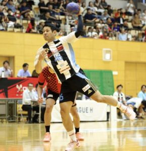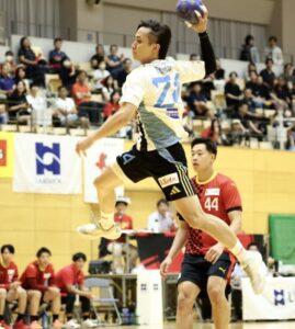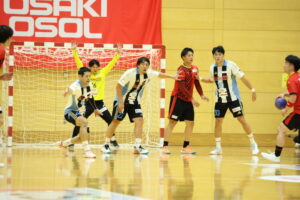 前半、慎重なパス回しから三重が決め1-1。続いて山口のカウンター、所の速攻で3連続得点。初登場の徳田は7メートルスローを落ち着いて決めた。数的有利の中、所、三重の連続ゴールで波に乗り、終盤は中田がパスカットからの連続得点。6点リードで折り返した。