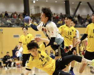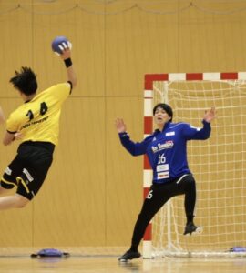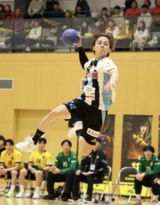 後半も津山、治田、山口らの得点でリードを広げた。守備では徹底したマンマークで相手の攻めを封印し、GK中村は再び7メートルスローを阻んだ。中盤、一時は2点差とされたが、要所で踏ん張り7点差で快勝した。