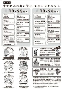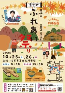 佐賀市富士町の富士支所周辺で開催される「ふれあい祭り」(10/25・26)で、レッドトルネードSAGAの2選手がトークショーを行います。登場するのは10/26(日)午後1時から40分間です。治田選手と梅本選手が、競技の魅力やとっておきのエピソードを楽しく語ります。来場者プレゼントも準備して皆さまの来場をお待ちしております。