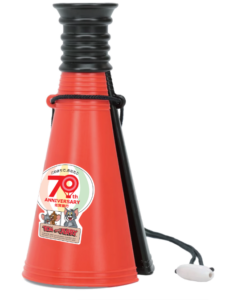 2月14日午後2時、SAGAプラザでスローオフのリーグHホーム戦(vs大崎オーソル)は「佐賀銀行 創立70周年プレミアムマッチ」として開催します。当日は先着1000名様にトムとジェリーとレットルくんがデザインされた応援用メガホンをプレゼントします。ちょっと小ぶりでキュートなメガホンで、レッドトルネードSAGAをにぎやかに応援してください。